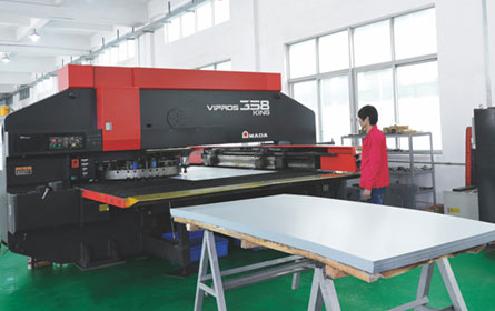 生產(chǎn)設(shè)備:德國、芬蘭和日本進(jìn)口的數(shù)控加工設(shè)備、全自動(dòng)靜電噴涂生產(chǎn)線、鈑金加工設(shè)備、機(jī)械加工中心
